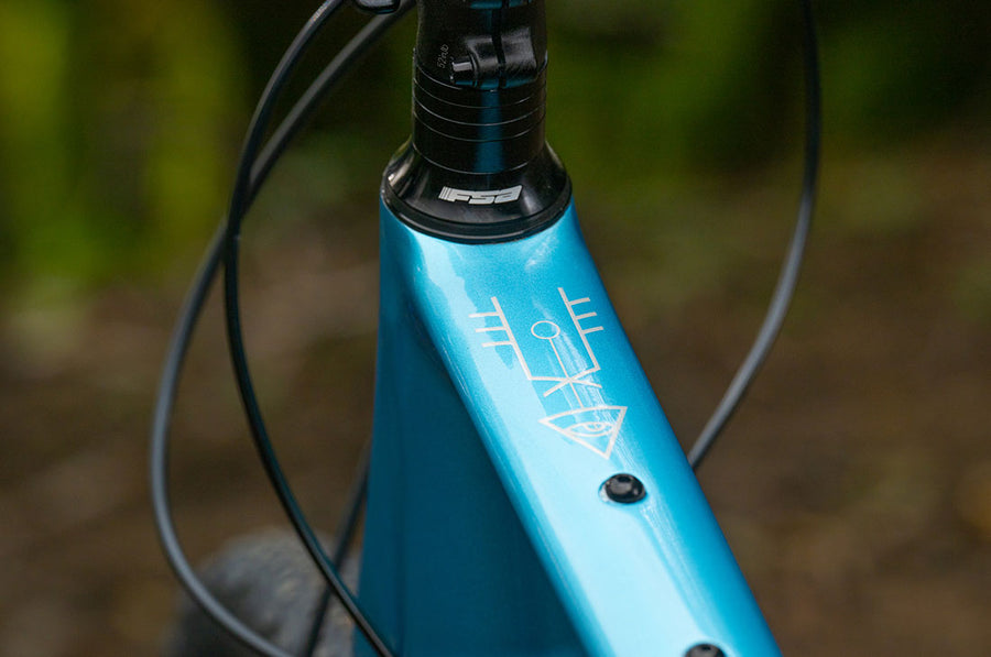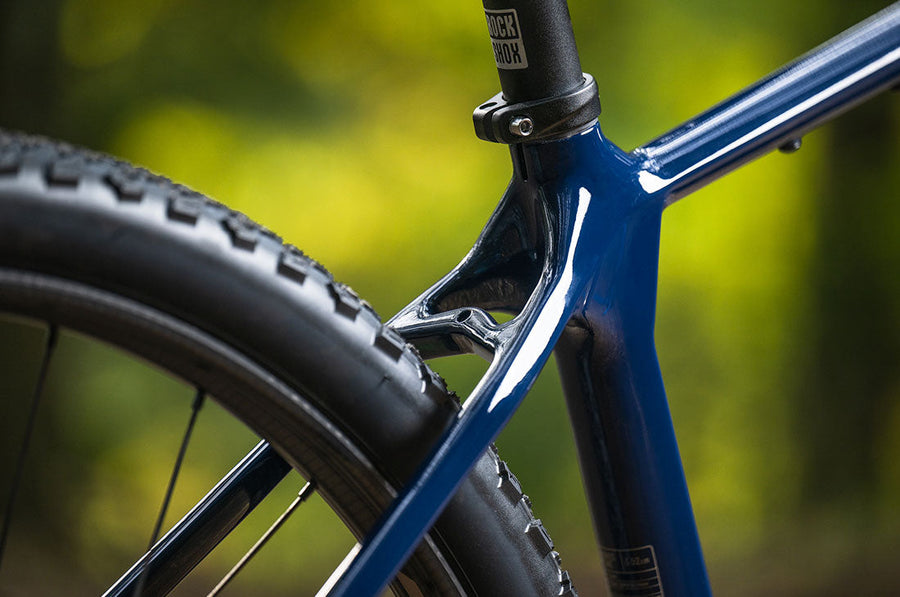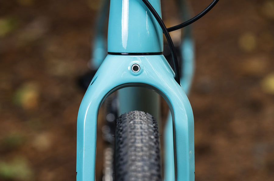 Slacker than gravel, steeper than modern trail mountain bikes, we chose this angle for a reason. This angle keeps enough weight on the front wheel to keep things snappy on slappy singletrack, yet relaxed enough to not send you kissing the front tire when things get beguiling.