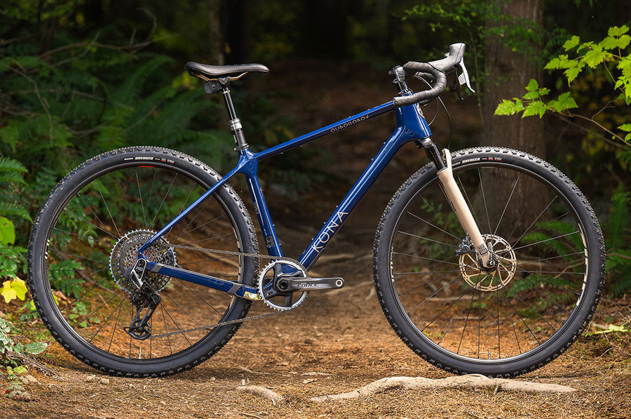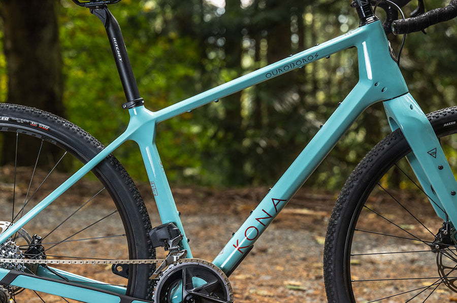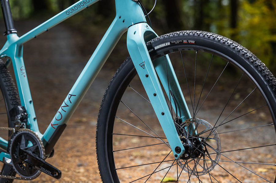 The Ouroboros is an all-new platform from the unbound minds at Kona. We bring you four builds – each meant for its own incredibly rowdy ride to the ends of the earth and back. Pack it expertly for the long haul, nimbly explore the edges of singletrack, or complete multiple days of the most wonderfully weird and delightfully chaotic of events. While other gravel bikes may technically tolerate mountain bike components, the Ouroboros is intentionally designed around the rowdy stuff – like 180mm rotors, massive tire clearance, and front suspension, giving you a ride feel that is otherworldly and almost mistakable for a modern trail bike.