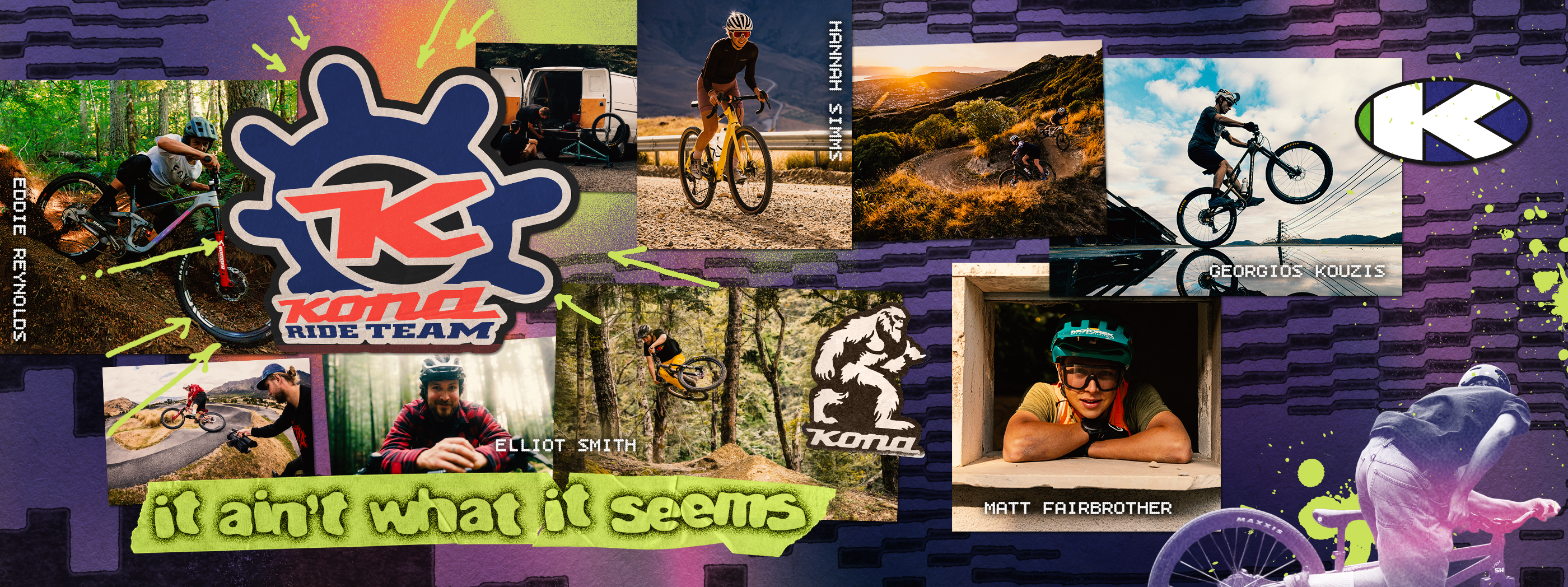 This is our marquee crew — unapologetically individual riders you can’t box in. A mix of steeze monsters and big-ride beasts who bridge performance and personality in a way that’s unmistakably Kona. Whether it’s podiums or pure authenticity that makes you want to go ride, you’re invited along. Just don’t ask too many questions.